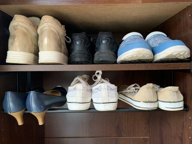 山崎実業の「浮かせる伸縮シューズラック」は簡単に靴の収納スペースを増やせる優れものです。アイデア次第でさまざまな使い方ができ、クローゼット収納などにも活躍しそうですよ。