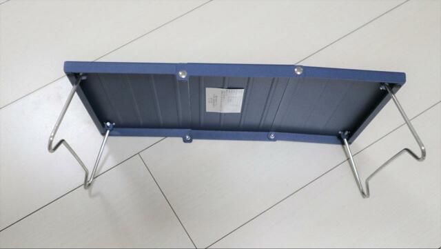 三つ折り状態から開いて脚を立てるだけで、小さなテーブルが完成します。