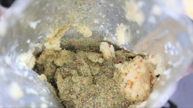 パテの素のアレンジの一案として、「ガーリックソルト」を先ほど紹介したハッシュドポテトに混ぜて焼いてみました。