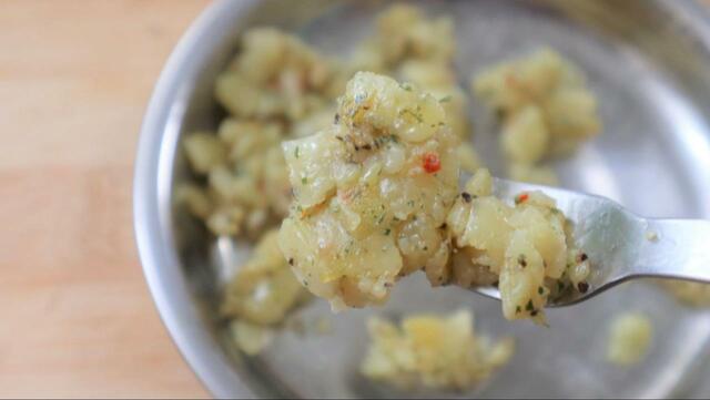 ポテトのレトルト袋の中で、そのまま混ぜることができます。