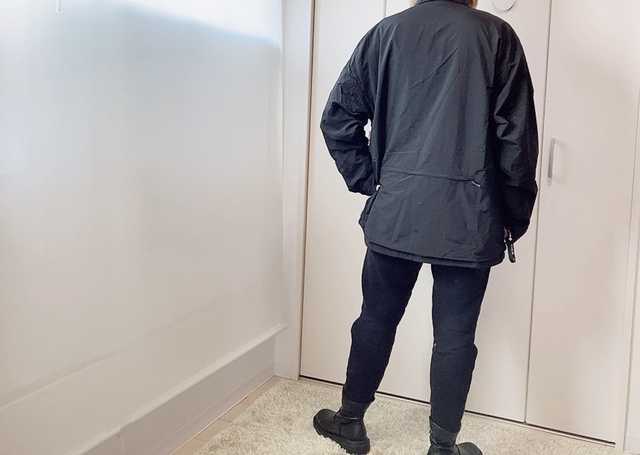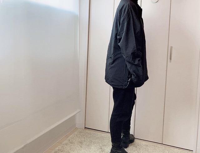 腰まで覆うオーバーサイズが抜け感を演出して、いい感じです。