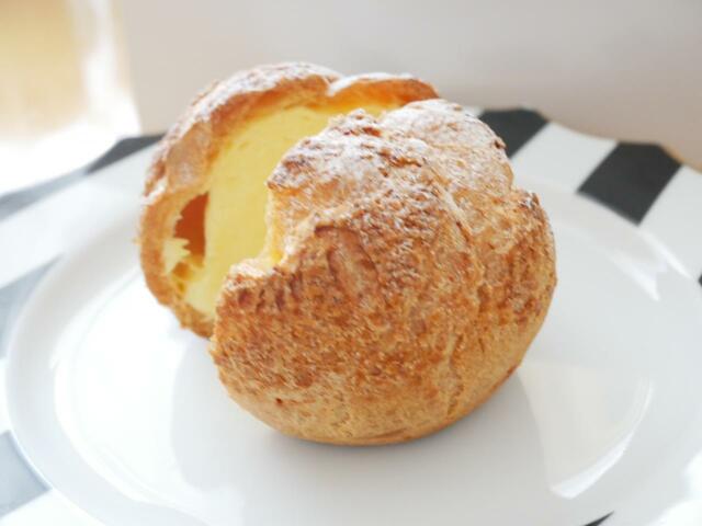 直径約9㎝のサックサクのシュー生地に、バニラ風味のカスタードクリームと生クリームを合わせた、ホテルメイドの特製クリームが、ぎっしりと詰まっています。