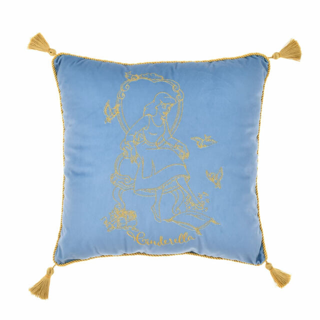 濃いブルーには、シンデレラがガラスの靴をはめる印象的なシーンを、金の刺繍でデザイン。