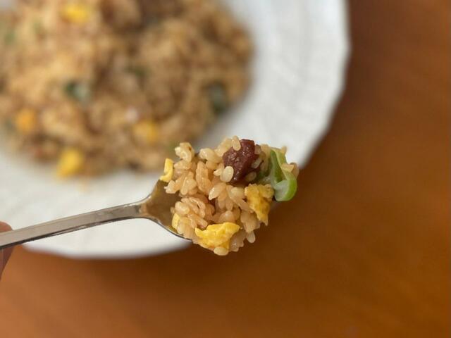 食べてみると、ご飯はべちゃつかず、一粒一粒にしっかりとモチモチっとした食感が感じられて美味しいです。