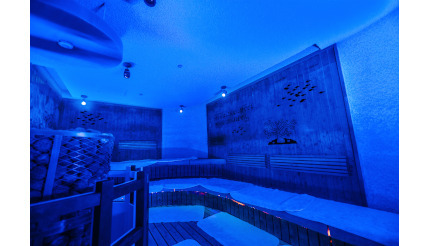 「海とつながる浴場」では、青色のライティングと音の演出によって、海にいるような感覚を味わえる。