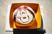 スヌーピーは、顔が描かれたドーナッツ。