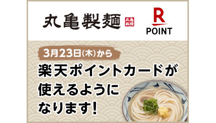 丸亀製麺は3月23日から、讃岐うどん専門店「丸亀製麺」の全国の店舗において、楽天ペイメントが運営する共通ポイントサービス「楽天ポイントカード」を利用できるようにした。