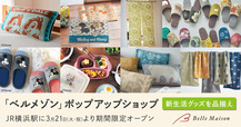 今回のポップアップショップでは、ベルメゾンで人気の高い「スリッパ」を中心に、「タオル・ランチグッズ・キッチン雑貨・寝具」などの新生活グッズを、多数品揃え。
