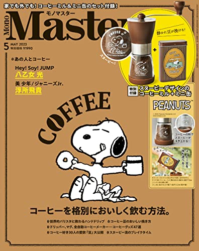 宝島社から3月25日に発売された『MonoMaster(モノマスター)5月号』の付録は“PEANUTS(ピーナッツ)”のスヌーピーデザイン「コーヒーミル」と「ミニ缶」です。