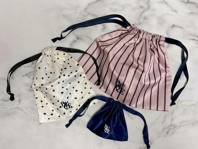ジェラートピケらしいおしゃれでかわいいデザインだけでなく、3種類全て絶妙なサイズ感と収納しやすい巾着型といった抜群の機能性においても、旅行の際のパッキングに大活躍間違いなしです!