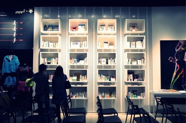 スポーツやカラダと関連した書が並ぶ、世界初の書店併設ショップ