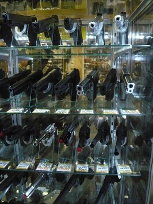 永盛さんによると、ガンの種類は「エアガン」「ガスガン」「電動ガン」の3つ。一番古いのは「エアガン」で「販売されたのは30年以上も前」とのこと。扱いやすく、ハンドガン(手に持つタイプ)の場合は3000円ほど。だが、撃つためには「一回ずつ作業をしなくてはならないのが難点」。