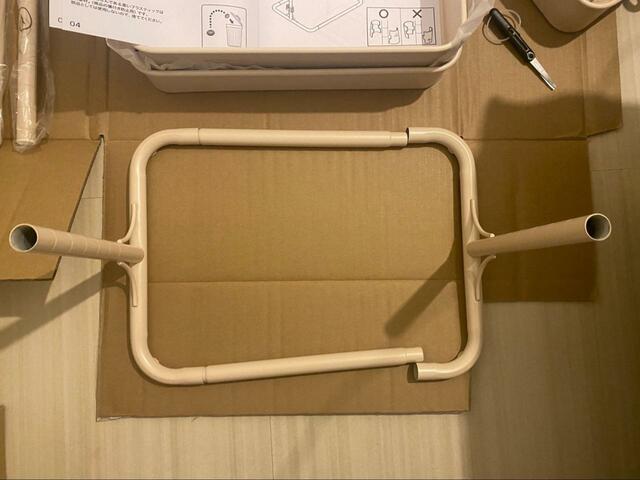 床を傷つけないよう、組み立ては段ボールの上で行うのがおすすめ。