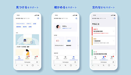 具体的には、「やること」画面で必要な手続きの確認や申請状況の管理が可能になったほか、「マイナンバーカード情報」「健康保険証情報」を見やすく表示し、更新時期の案内によって証明書の期限切れを防げるよう変更した。また、「予防接種」「母子の健康保険」「税」情報を新たな画面で簡単に見やすく表示し、「医療費」情報をグラフ表示も追加した。ほかにも、「引越し」「年金」の手続きへリンクし、実証アルファ版からも手続きを可能にした。