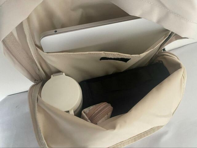 KEYUCAのリュックと比較するとマチが小さいですが、口がガバッと開くので、KEYUCAよりたくさん入る印象でした。