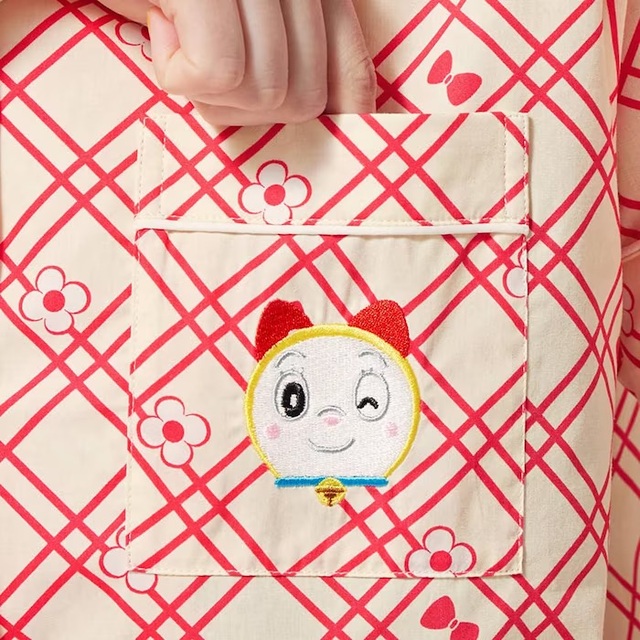 胸ポケットにドラえもんかドラミが刺繍されています。