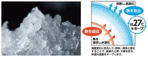 28℃以下で自然凍結するので、冷蔵庫などに入れる必要もなく、自然と冷たくなります(冷蔵することで冷却時間の短縮が可能です)。