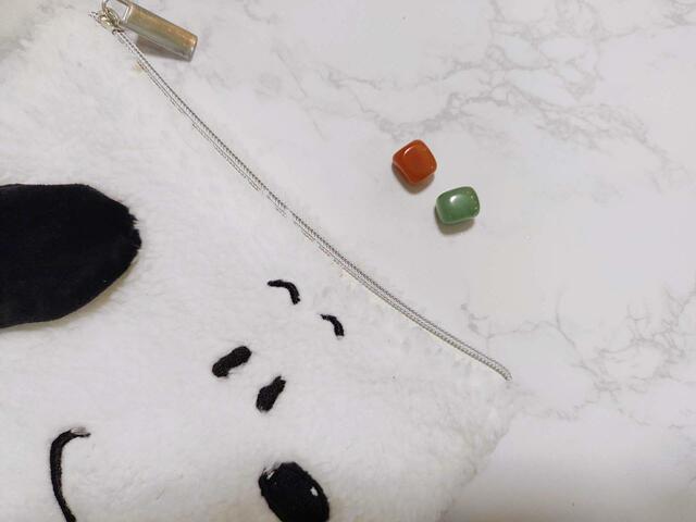 筆者が愛用しているお薬入れ用のポーチに「レッドアベンチュリン(回復)」、「アベンチュリン(健康運)」を入れてみました。