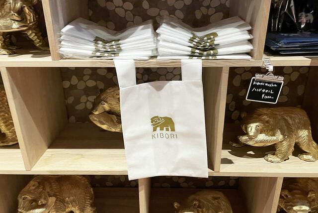 また、「KIBORI」では、木彫りの熊をモチーフにしたバッグやハンドタオルなど、お土産にもなるかわいいグッズも販売されていました。