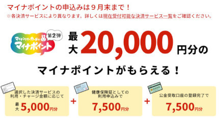 総務省が実施している、選んだキャッシュレス決済サービスに応じて最大2万円相当のポイントがもらえる「マイナポイント第2弾」のマイナポイント付与の条件は、二度の延長の結果、「2023年2月28日までにマイナンバーカードの交付を申請した人」となり、マイナポイントの申し込み期限は「23年5月末まで」だったところ、「23年9月末まで」に延期が決定した。3月31日に総務省が発表した。