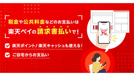 「楽天ペイ(請求書払い)」は、ガス、水道、電気などの公共料金や自動車税種別割、固定資産税、住民税、国民年金保険料などの請求書(払込票)に記載されたバーコード・eL-QRを、「楽天ペイ」アプリで読み取ってその場で支払いができるサービス。後発となるが、「eL-QR」対応するため、サービス開始時から多くの払込票に対応する。