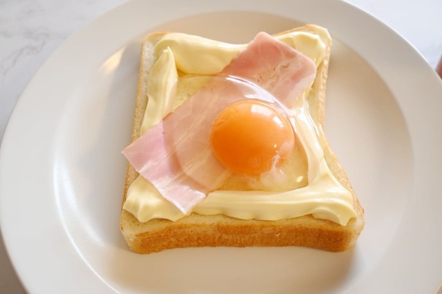 1:トースターひとつでできる!「卵とベーコンのマヨトースト」