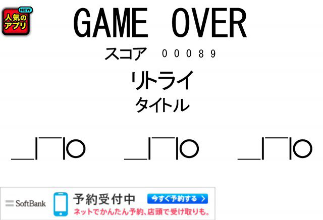 「あああああ」という名前の通り、ゲームの中身もやはりシンプルな設定。棒人間をジャンプさせ、「あああああ」という文字に乗りながら移動していく横スクロールアクションです。