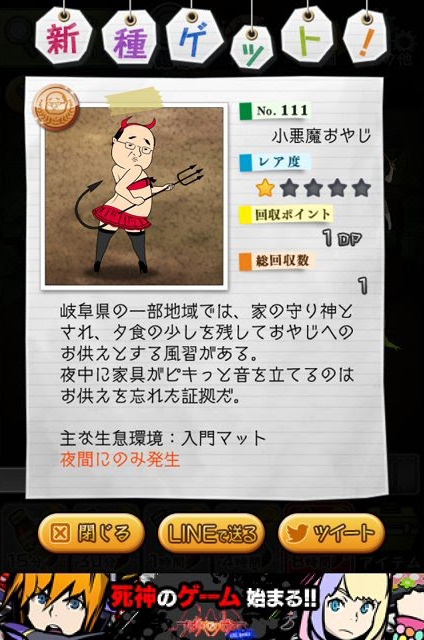 回収したおやじは図鑑に登録され、いつでも確認可能です。
