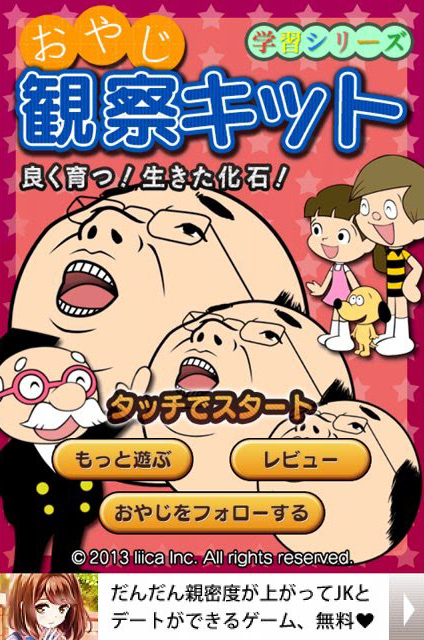 そして、ついに、おやじを育成するゲームが登場! かわいいかどうかは置いておくとして、早速プレイ!