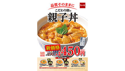 「なか卯」は4月6日(本日)11時、看板商品「親子丼」の価格を改定し、並盛450円で提供を開始した。