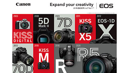 キヤノンは3月28日に、同社がレンズ交換式デジタルカメラ(デジタル一眼レフカメラ・ミラーレスカメラ)の世界市場において、2003年~2022年の20年連続で台数シェアNo.1を達成したと発表した。