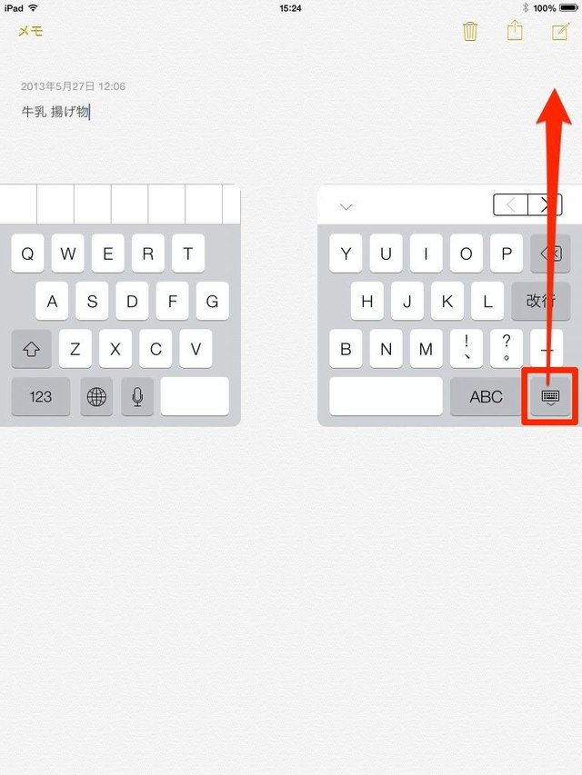 iPadのソフトウェアキーボードは画面下に表示されますが、実はこれ、動かすことが可能です。