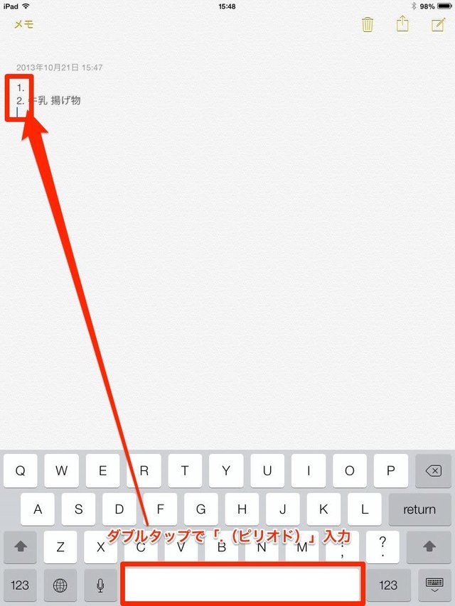 ■裏ワザNo.6:スペースキーをダブルタップで「.」を入力(iPhone対応)