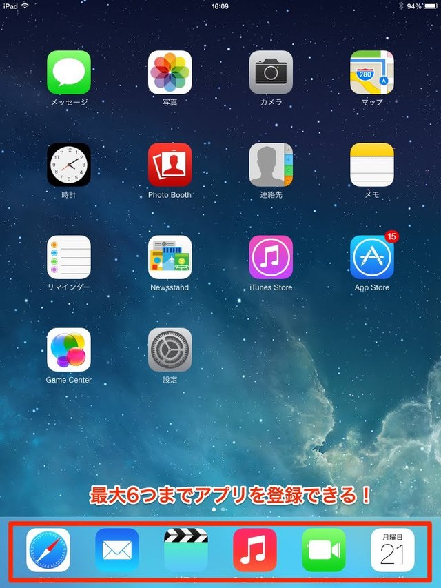 ■裏ワザNo.10:iPadはDocに6つのアプリを登録できる!