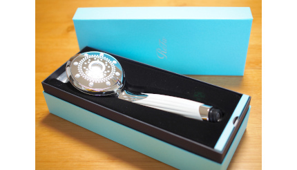 シャワーヘッド部分には0.3mmの穴が210個密集しており、水がAラインに広がって出てくる。これまで使っていたシャワーヘッドとは穴の数がまったく違い、水の肌への当たり方が大きく異なるのに驚いた。