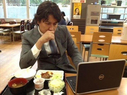 省庁の食堂でスーツを着てPCを片手にご飯を食べている人は…?