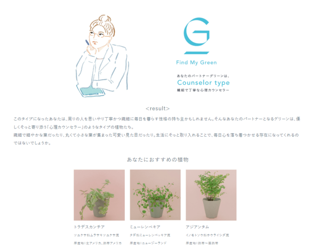 このページでは、タイプごとにおすすめの植物がピックアップされます。