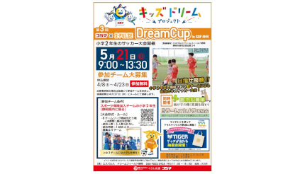 コジマは5月21日に、静岡県内の少年サッカー連盟に加入するチームの小学2年生を対象としたサッカー大会「第3回 コジマ×エスパルス Dream Cup in SDF 静岡」を、エスパルスドリームフィールド静岡(静岡県静岡市)にて開催する。開催時間は9時~13時30分。