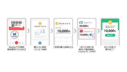 今回の機能追加によって、PayPayポイントを利用した有価証券の買付が可能になり、買付金額はPayPayマネーとPayPayポイントとの合算で、100円から1円単位、1ポイント=1円として利用できる。有価証券を売却すると、PayPay残高(PayPayマネー)へチャージされ、買い物などに使える。