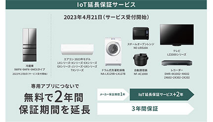 パナソニックは4月11日、1年のメーカー保証に加え、2年の延長保証を無料で適用する「IoT延長保証サービス」を順次拡大すると発表した。通常、メーカーの保証期間は1年で、それ以降は家電量販店などが提供する延長保証や長期保証サービスを利用するケースがほとんど。今回のパナソニックの取り組みは、自社製品だけの対象ではあるものの、さらに2年間を無料で保証するという思い切ったサービスだ。