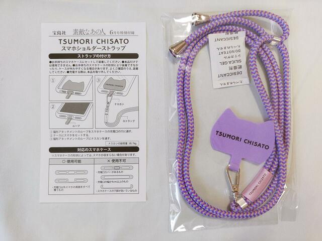 雑誌の付録が入ったボール紙製の箱を開けると、ラベンダーカラーが綺麗なスマホショルダーストラップが出てきました。