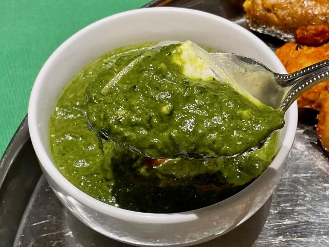 グリーンチャトニはタンドリーチキンに付けたり、ライスに少しかけると味変する魔法のソースだ。