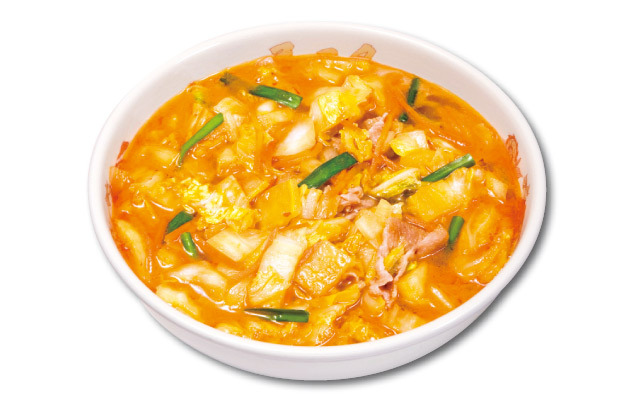 独自に開発されたトンコツスープは、長時間煮込み、深いコクを再現。中細の自家製麺に炒めた白菜、ニラ、ニンニク、豆板醤と背脂を加えたボリュームたっぷりの一杯だ。