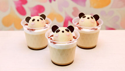 マーラーカオは丸みを帯びた立体感でパンダを際立たせ、ひとつひとつ可愛く仕上げている。プリンは同店パティシエが得意とする逸品で、マダガスカル産バニラビーンズを使用して贅沢な香りを引き出したり、優しい甘味になるよう「きび砂糖」を使用している。
