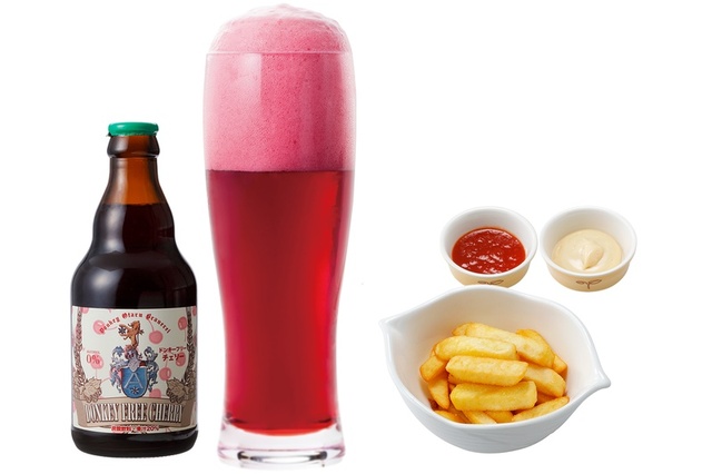 また季節ビール「チェリールビー」も期間限定で販売されます。おつまみに嬉しいミニポテトがセットになったメニューも登場しています。