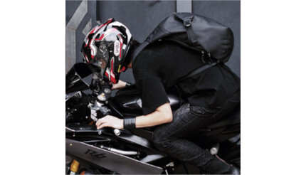 「GeeKnight-S」は、ヘルメットが収納できる大容量のバックパック。ヘルメットの持ち運びで手が塞がることもないため非常に快適。