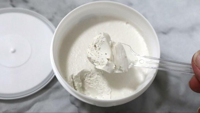 アイスクリームに似たパッケージの蓋を開けると、中身もまるでミルクアイスのよう。