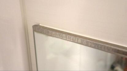 次は 風呂の鏡のふちです。水垢とホコリなのか、たまった汚れがやばい…。