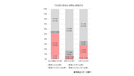 企業によるお花見、歓迎会・懇親会の開催、規制は緩和傾向も開催率は3割に届かず