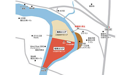 奥むさし飯能観光協会と飯能市は、入間川河川敷の「飯能河原」について、河川管理者である埼玉県と連携して2022年に2度にわたって実施した有料化実証実験をもとに、2023年4月29日からバーベキュー(BBQ)などを目的とした火気使用可能エリアの利用を有料化する。無料エリアは無料だが、火気の使用は禁止。